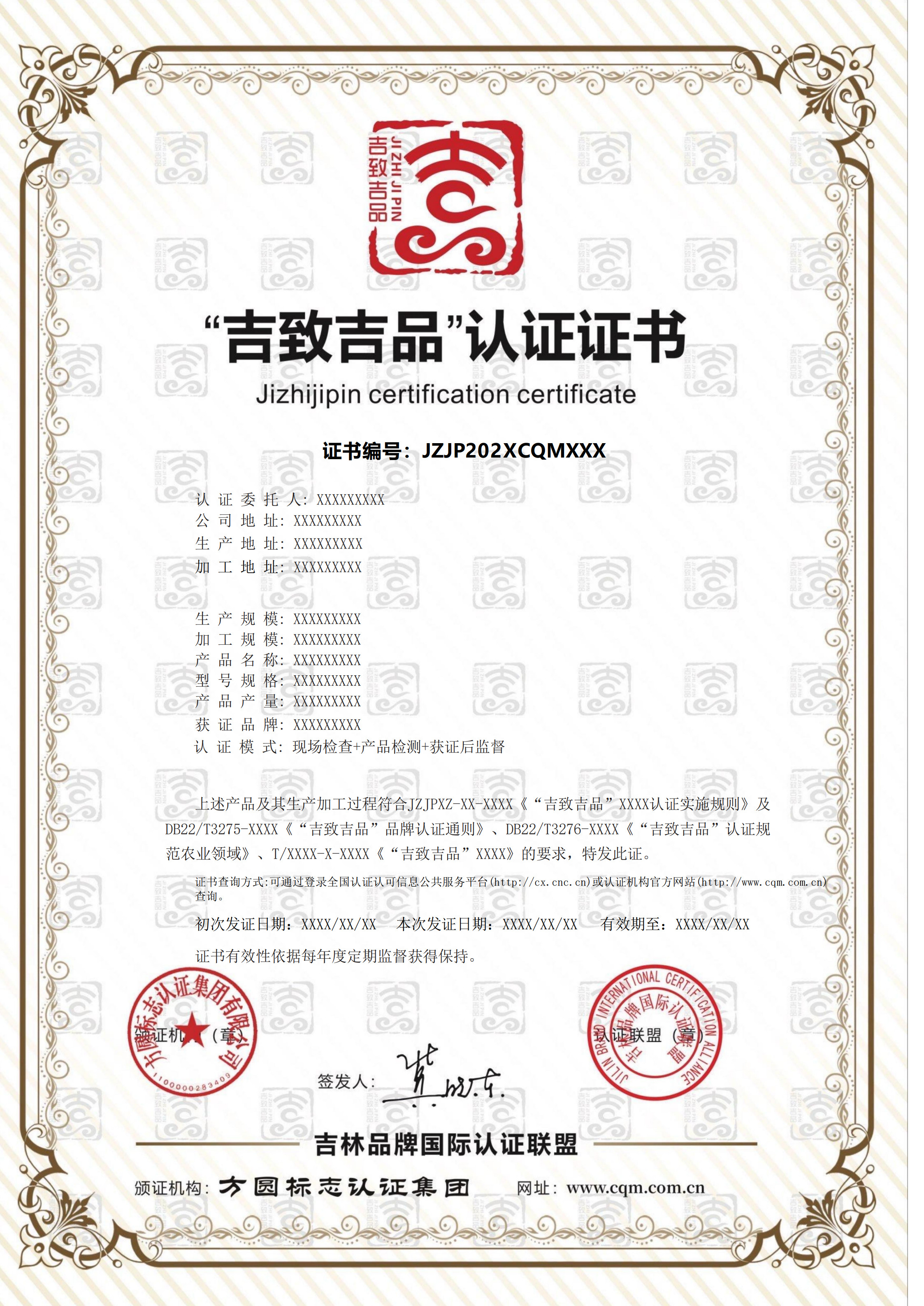 “吉致吉品”证书样式: