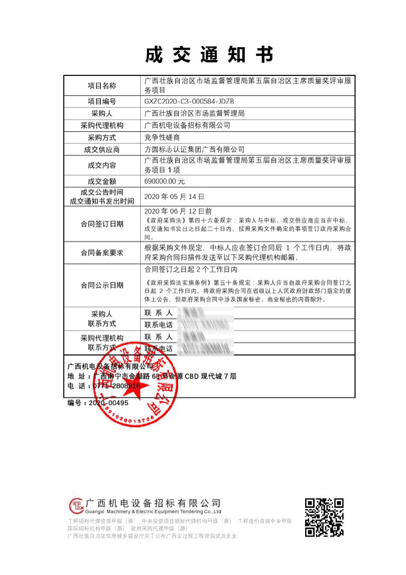 方圆广西公司成功中标第五届广西自治区主席质量奖评审项目