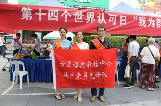 在福建省市场监督管理局开展的“世界认可日”现场宣传活动上,方圆标志认证集团福建公司积极协助主办单位,向广大市民宣贯认证认可、检验检测等法律法规,普及强制性产品认证(包含家用电器、儿童玩具、消防产品、电动车等)、无抗认证、富硒认证、绿色认证、有机认证等认证相关知识,进一步提高认证认可检验检测的社会认知度、企业认同感、消费者获得感,使社会各界更加关心了解认证认可检验检测工作。