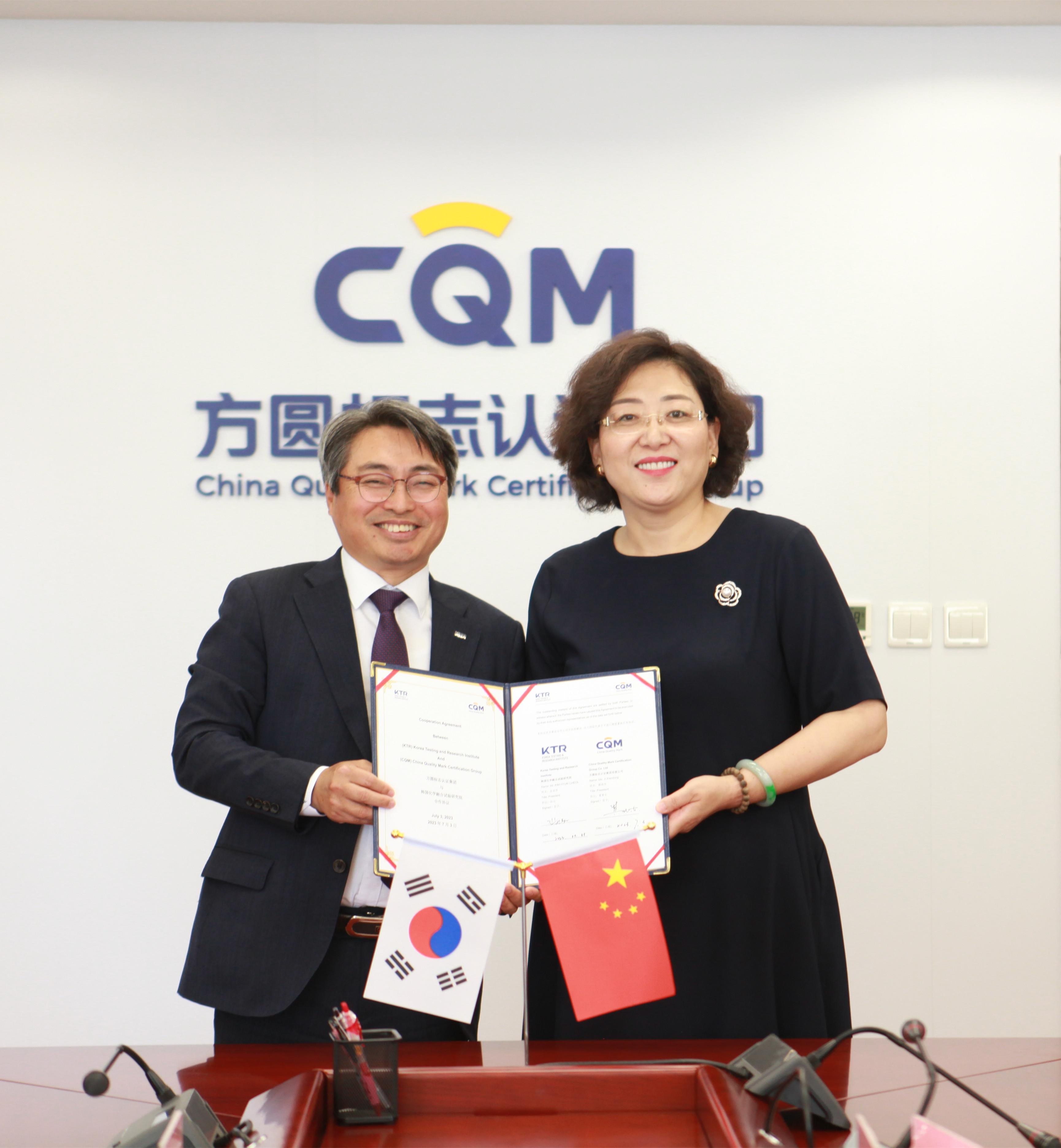 7月3日,方圆标志认证集团与韩国化学融合试验研究院Korea Testing & Research Institute(以下简称KTR)在北京举行战略合作协议签约仪式。方圆集团董事长兼总裁冀晓东,韩国KTR院长金显哲分别致辞并代表本机构在协议上签字。方圆集团副总裁刘险锋出席签约仪式。