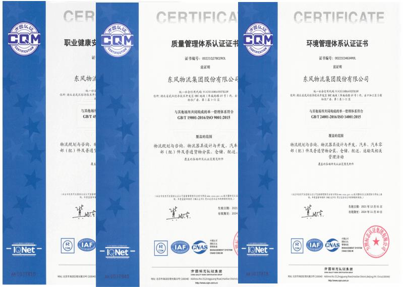时间:2021年12月27日 近日,东风物流集团总公司及16家分子公司获得了方圆颁发的认证证书,该项目是方圆集团目前为止认证的最大的专业性整车、零部件配送物流项目,在运输物流认证领域具有里程碑的意义。该项目现场涉及湖北、河南、广东、江苏、四川、山东等众多省份,同时由于专业性强、审核人日多,企业对审核要求高,给审核以及服务带来很大的困难和挑战。在集团公司的支持及方圆湖北公司上下一心的共同努力下,我们在预定的时间内高质量完成了认证审核与发证工作。东风物流集团对我们的工作给予了高度的肯定,为后续的合作打下了坚实的基础。